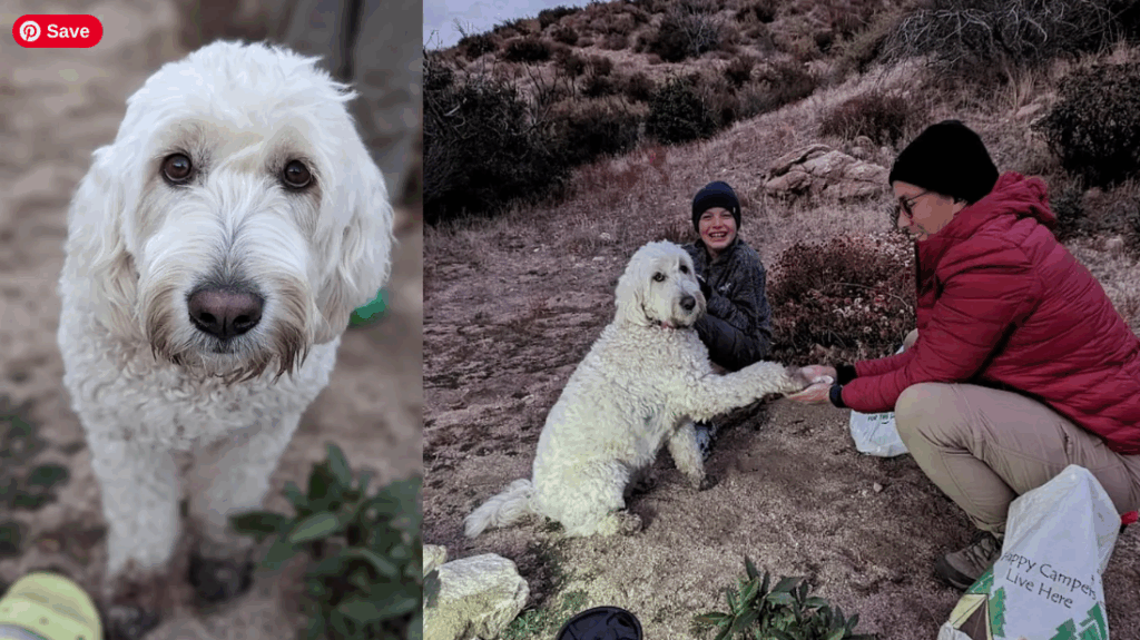 Until then, my golden doodle remains my favorite white (or gray, or black, or blue) hiking buddy, dirt and all. At least someone’s excited about hiking!