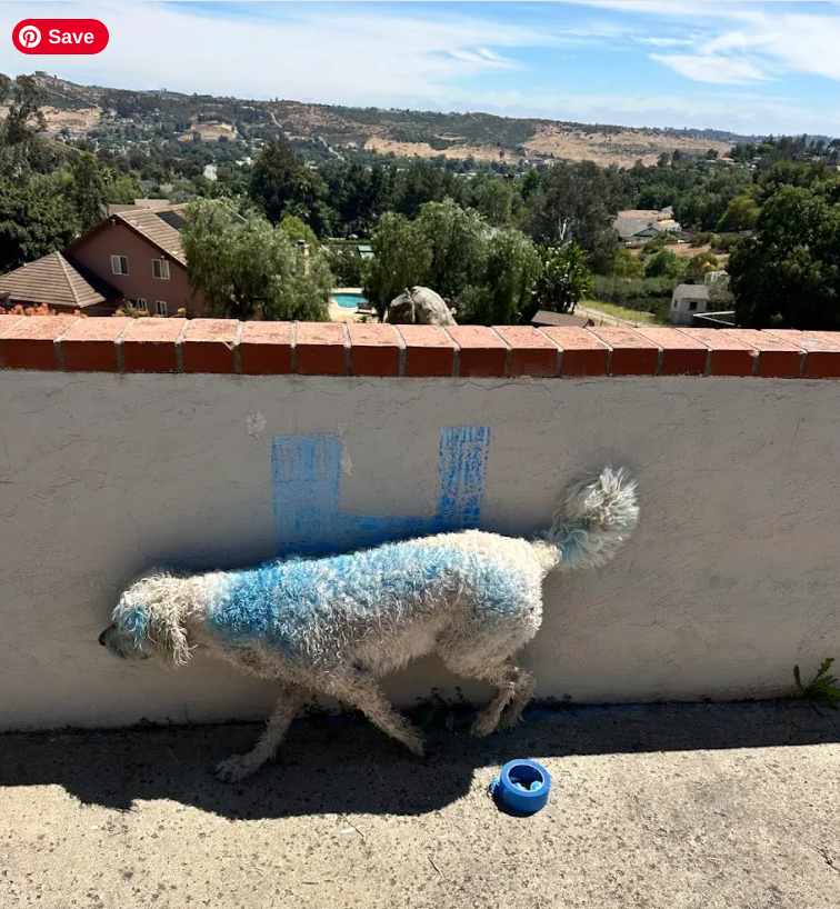 You see, my teenager has taken to decorating our backyard wall with bright blue chalk drawings. It’s lovely, except for one tiny detail: my freshly cleaned dog thinks this wall is her personal scratching post. She rubs against it with wild abandon, and when she returns, she’s no longer a white dog. She’s blue. Smurf blue.