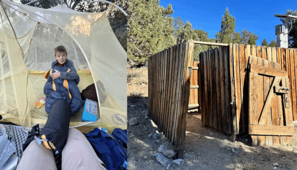 Mornings on the trail are a mix of challenges and small victories: packing up gear, hunting for lost socks, and answering the call of nature. Speaking of nature, one particular campsite offered the ultimate trail luxury: a pit toilet. My oldest and I went to investigate, marveling at its wooden walls. Sure, it had no door and no ceiling, but who cares? Out here, a seat and a bit of privacy felt like five-star accommodations. My dog even stood guard at the “door,” playing the perfect watchdog while I enjoyed this rare trail luxury.